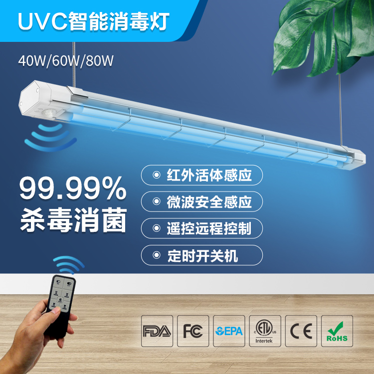 | [簡介]應用范圍:醫院/學校/商場/公共場所功率:2x40W輸入電壓:220-240V燈管類型:UVC波長:254nm安裝方式:吸頂裝吊裝壁掛控制器:無線控制時間:30/60/90/120分鐘傳感器:微波+紅 |