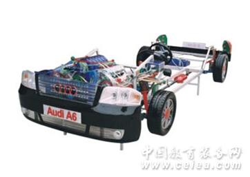 演示時插上220V電源(選擋手柄處檔位指示燈亮),打開點火開關,發動機開始慢速運轉。選檔閥共分七檔(即手選一檔、手選二檔、手選三檔、前駛驅檔、空檔、倒檔和停車檔),需要演示何檔位時,把手柄撥在其檔位上(指示燈亮),采下油門踏板,發動機加快速度。選檔閥在倒檔、空檔和停車檔上時,車速表指示為0,手選一、手選二、手選三和前驅檔上時,車速表分高和低演示,并且顯示在何種范圍內變速器開始自動換檔。節氣門開的越大發動機轉速越快,變速器檔位越高車速表指示越高(模型沒有真正車速,發動機轉速代表車速)。儀表板右面特地裝上變速器檔位顯示,表示在何檔上工作。放松油門,發動機轉速減慢,變速器隨之降檔。當采下制動踏板制動時,變速器自動回空檔,車輪制動器上的液壓缸活塞來回自由活動,表示ABS剎車過程。前后車燈演示時打開車燈開關即可演示其亮與否,冷卻器風扇用開關打開演示。