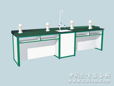 1.1.4結構:教師演示臺左側為PP化驗水槽帶銅質鍍鉻三聯高壓水嘴,中間為演示臺。采用專用腳墊,可有效防止桌身受潮,延長設備的使用壽命。