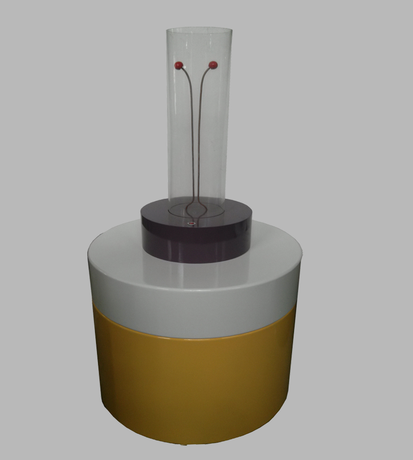 規格:Φ800×1300,底臺:Φ800×700,ABS工程塑料,開模一次成型。臺面面板木質烤漆,展示原理: 在2萬伏高壓下,兩電極近處(約0.5厘米)的空氣首先被擊穿,產生電弧放電�?諝鈱α骷由想妱恿Φ尿屖�,使電弧向上升。隨著電弧被拉長,電弧通過的電阻加大,維持空氣電離所需的電壓更高、能量更大時,電弧就會自行熄滅。操作說明: 接通電源,觀察電弧沿羊角形電極向上升的現象。展品盡可能放在光線較暗,且通風良好處,這樣效果更佳。