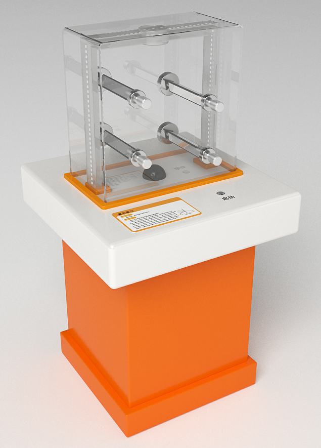 三、功能概述:展品由隱形裝置、光路展示裝置構成。隱形裝置有五棱鏡、三棱鏡各6塊,組成一個光路折射組合,讓光線繞開中間的區域,達到隱形的目的,觀眾將測試棒插入棱鏡組中間的洞,會發現,棒的中間那段消失了,同時光線只避開棱鏡組中間的區域,棱鏡后面的圖案同樣清晰可見;光路演示裝置由激光器、移動機構、棱鏡組、操作手輪、傳動機構等構成。轉動手輪,啟動激光器,并移動激光的入射點,可清晰看到光路的變化。