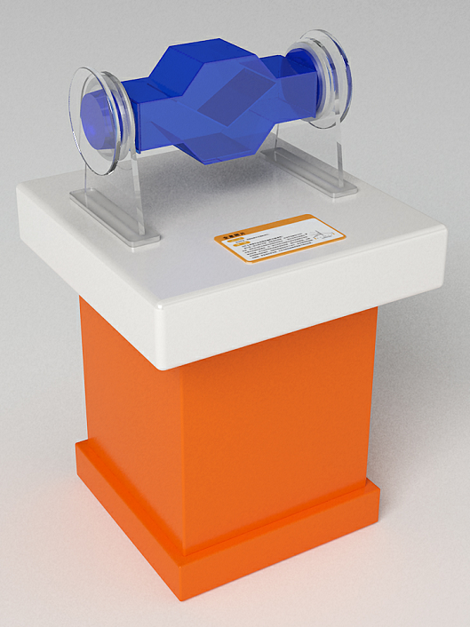 三、功能概述:展品由隱形裝置、光路展示裝置構成。隱形裝置有五棱鏡、三棱鏡各6塊,組成一個光路折射組合,讓光線繞開中間的區(qū)域,達到隱形的目的,觀眾將測試棒插入棱鏡組中間的洞,會發(fā)現,棒的中間那段消失了,同時光線只避開棱鏡組中間的區(qū)域,棱鏡后面的圖案同樣清晰可見;光路演示裝置由激光器、移動機構、棱鏡組、操作手輪、傳動機構等構成。轉動手輪,啟動激光器,并移動激光的入射點,可清晰看到光路的變化。
