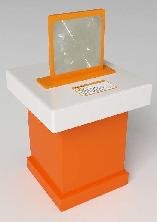 三、功能概述:本展品主體為一組由三塊全反鏡組合而成的可旋轉觀察通道。我們都知道,單塊平面鏡成像時,無論鏡子如何旋轉,鏡子內的像是不跟著旋轉的。本體驗裝置里裝有三面鏡子,并按一定角度組合,使得光線從一端必須經過三次反射才能到達另一端,旋轉本裝置,三塊平面鏡同時轉動,站在裝置對面的另一人的頭部雖沒轉動,但三塊平面鏡對入射光三次反射的位置起了變化,造成他的鏡像或左右或上下顛倒的現象。