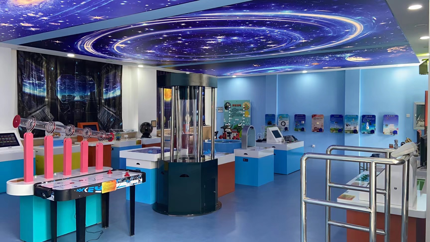 校園科技館的展品設置以“始于歡樂、終于智慧”為目標,以科技教育為主,讓青少年學生置身于他們生活中所能遇到的各種科學現象和結構模型之中,引發他們的創造性思維,充分體驗科學樂趣并進行創造性的活動。展區設計和展項設置圍繞體驗、發現、創造等理念進行,營造有利于青少年展開科學探索活動的條件,充分體驗科學所帶來的樂趣,在玩耍中形成“樂于探索、熱愛科學”的品質,在他們幼小的心靈中植下科學的種子。