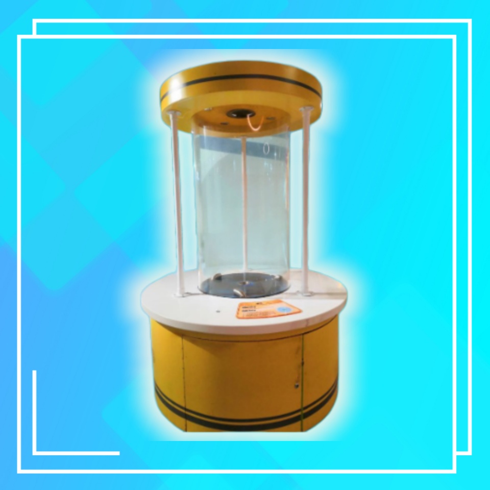 3、按下按鈕,觀察圓筒內水運動形成的現象。該展品主要展示了漩渦的形成。