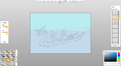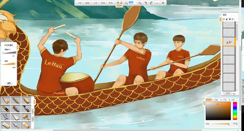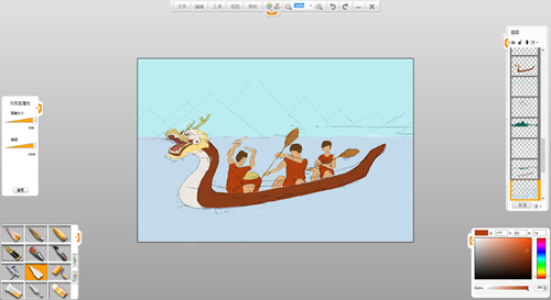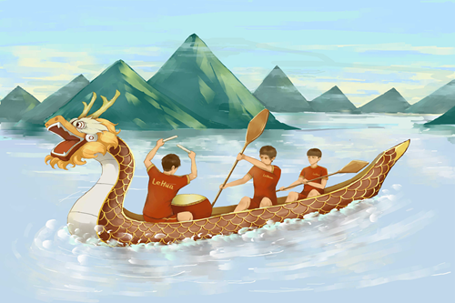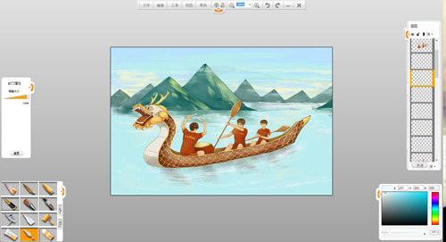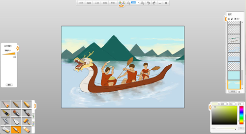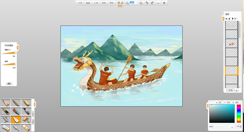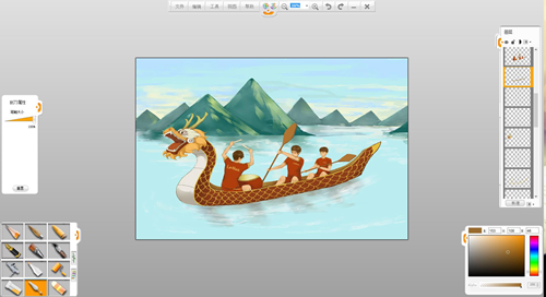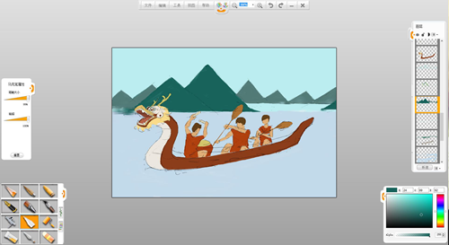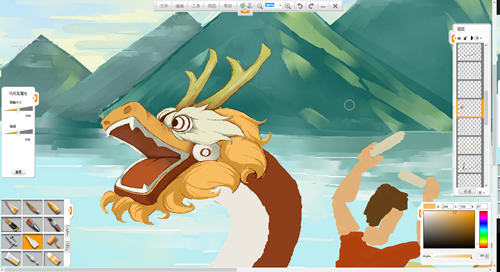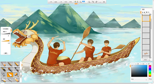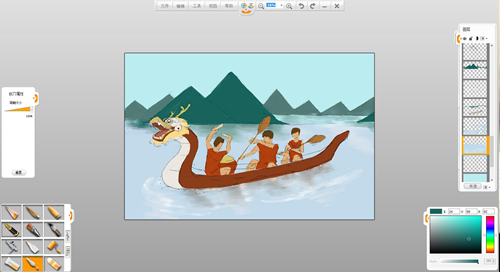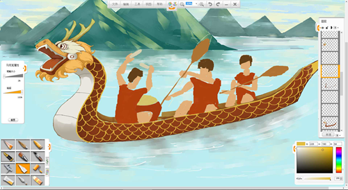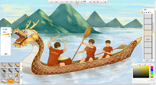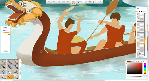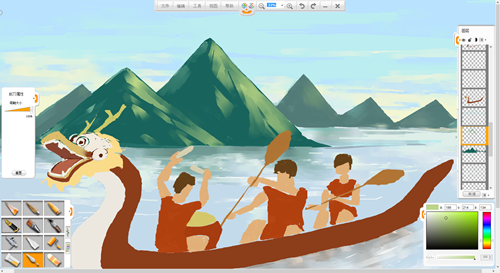 現(xiàn)在來創(chuàng)作一幅端午節(jié)劃龍舟的作品吧。