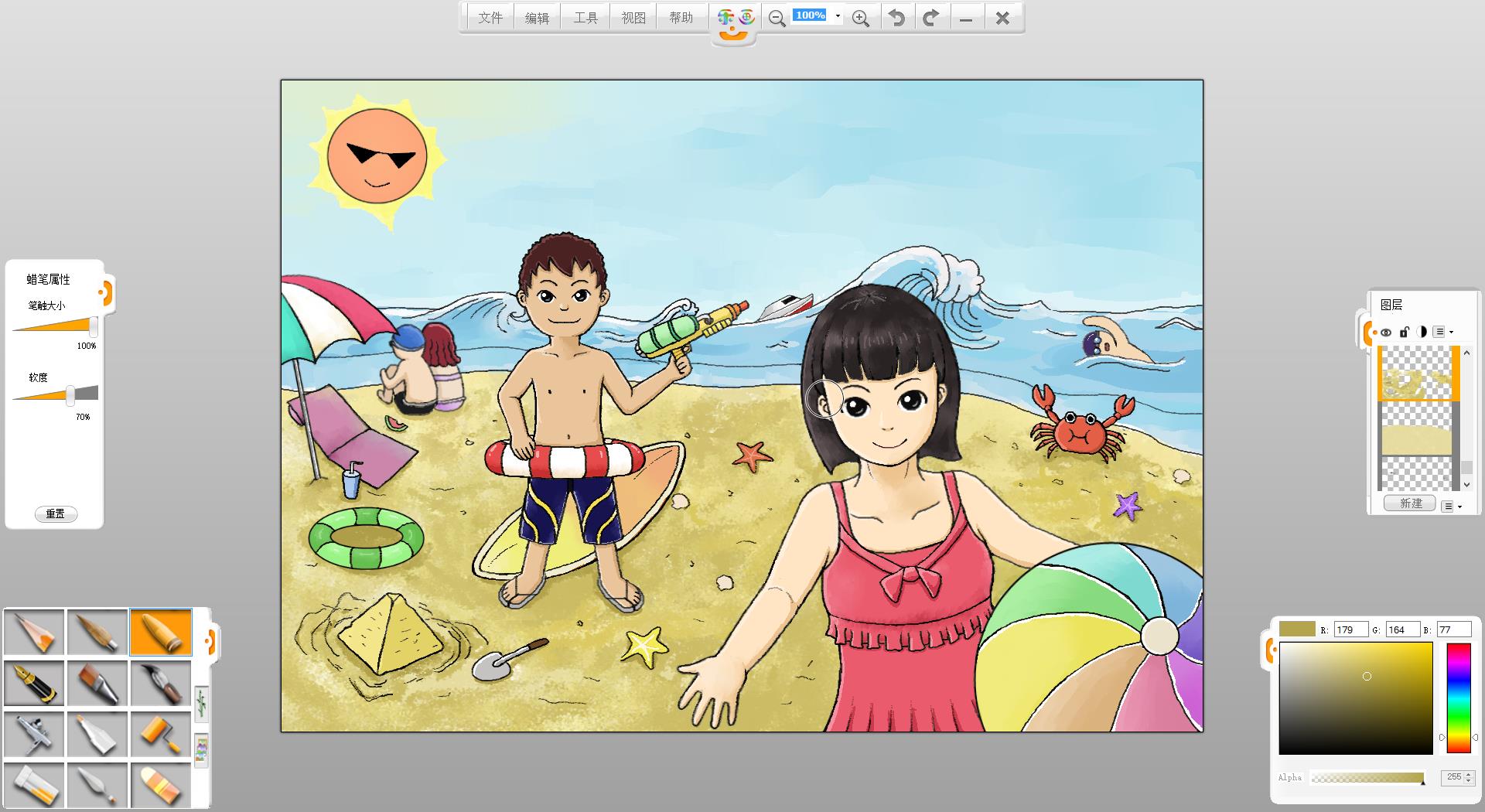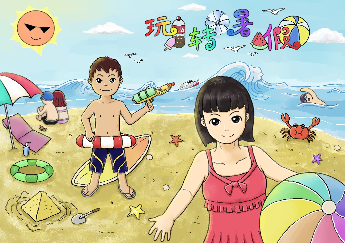 暑假到了,假期準備如何度過呢?去海灘游玩是一個不錯的選擇�,F在來嘗試創作一幅“玩轉暑假”的作品吧!