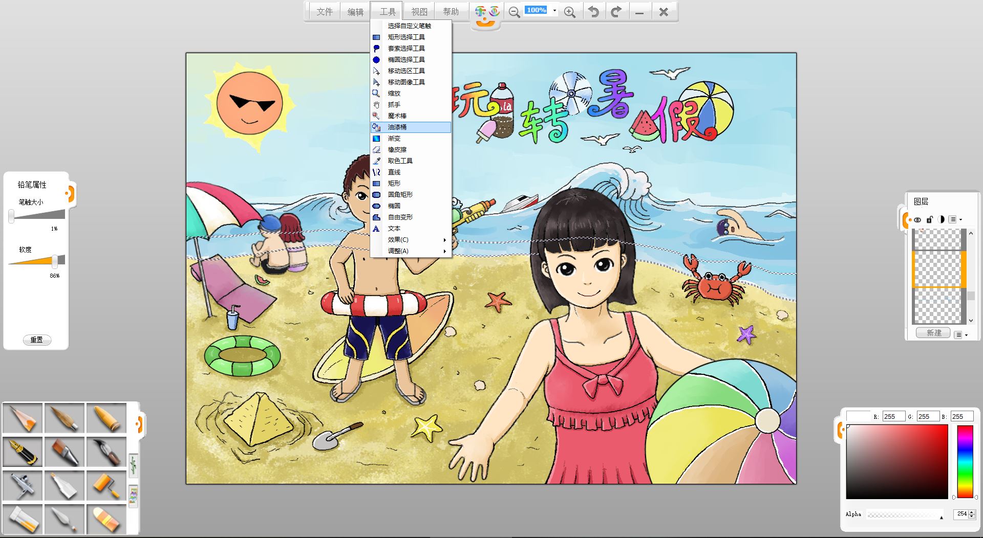 26.一幅“玩轉暑假”的作品創作完成了,如果有時間還可以給人物更換不同的發型和服裝。