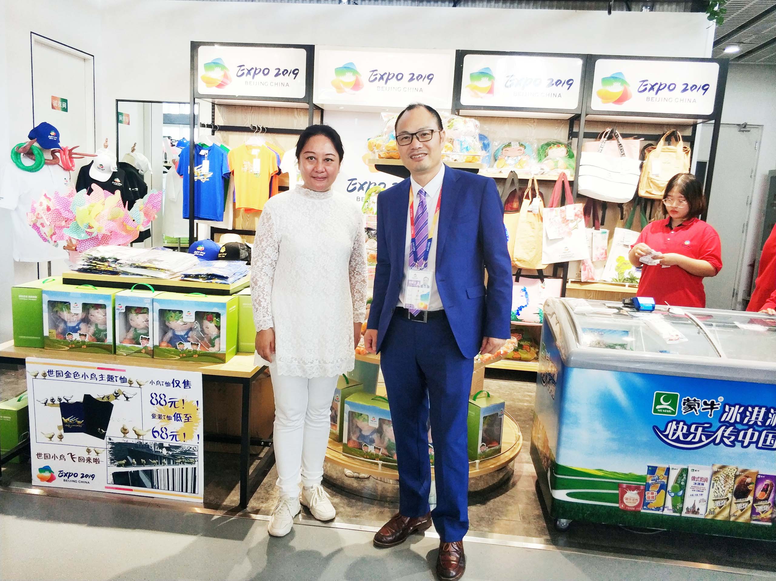 聯合國項目事務署中國項目中心主任羅響與康智達公司總經理貢慶慶在游覽世園會期間合影