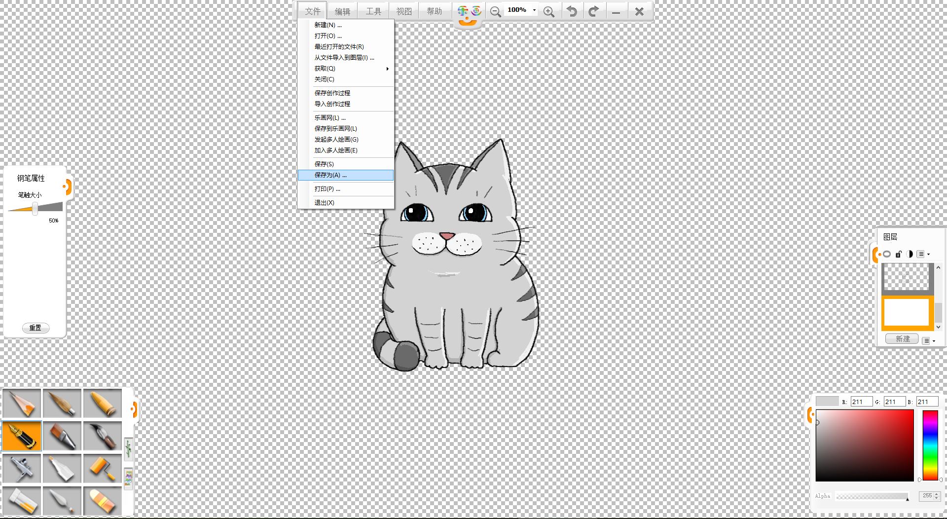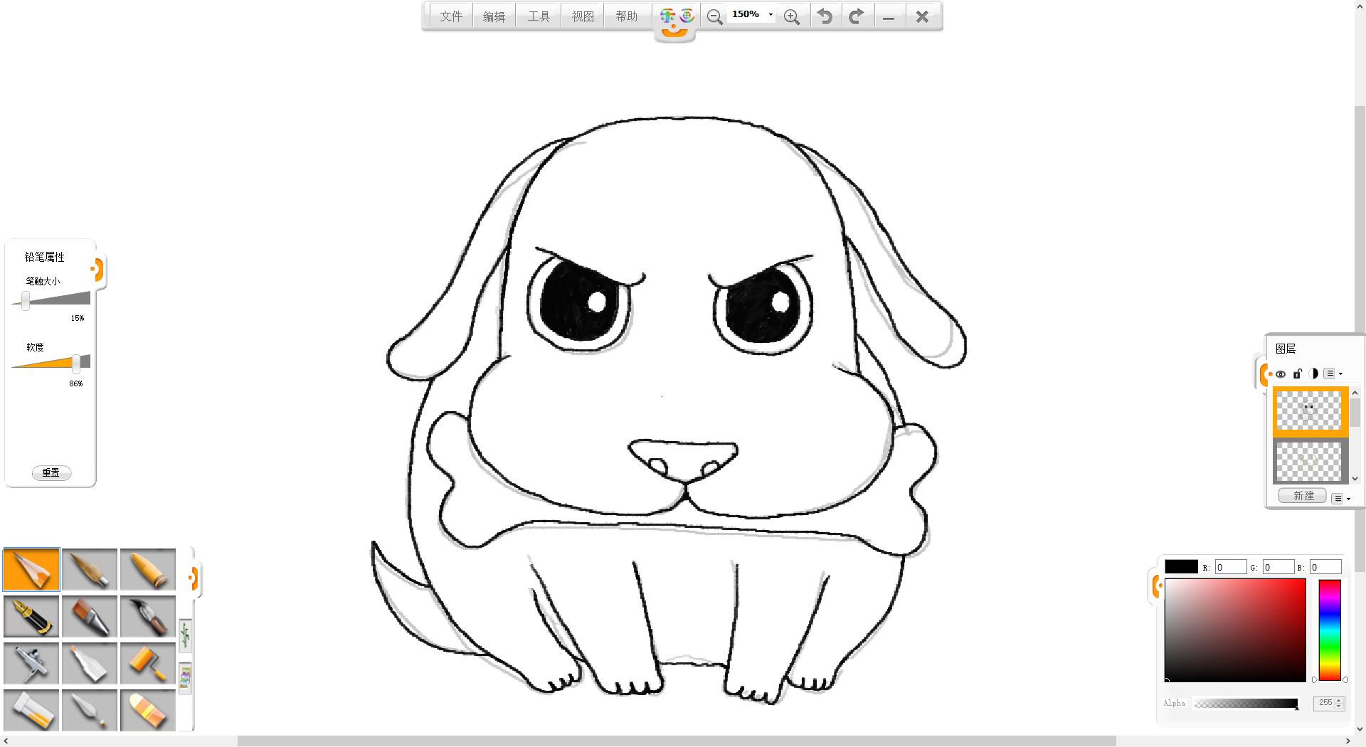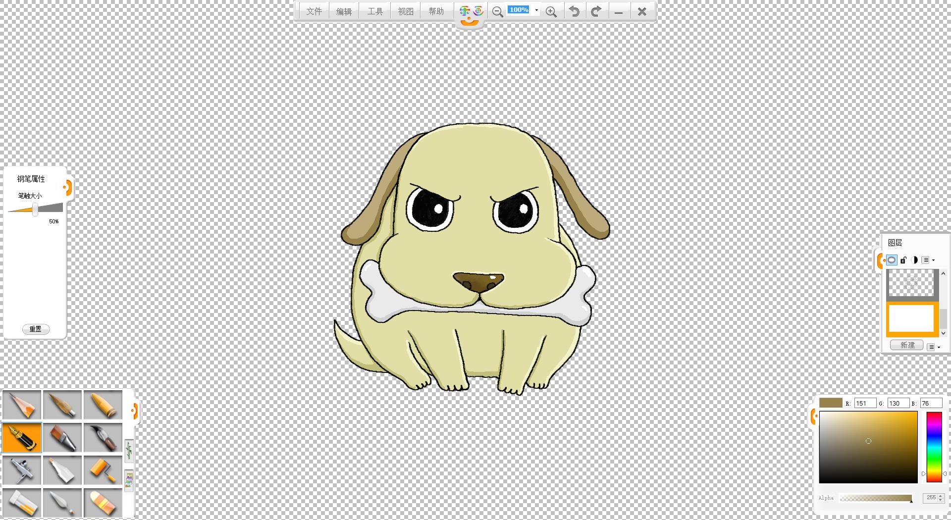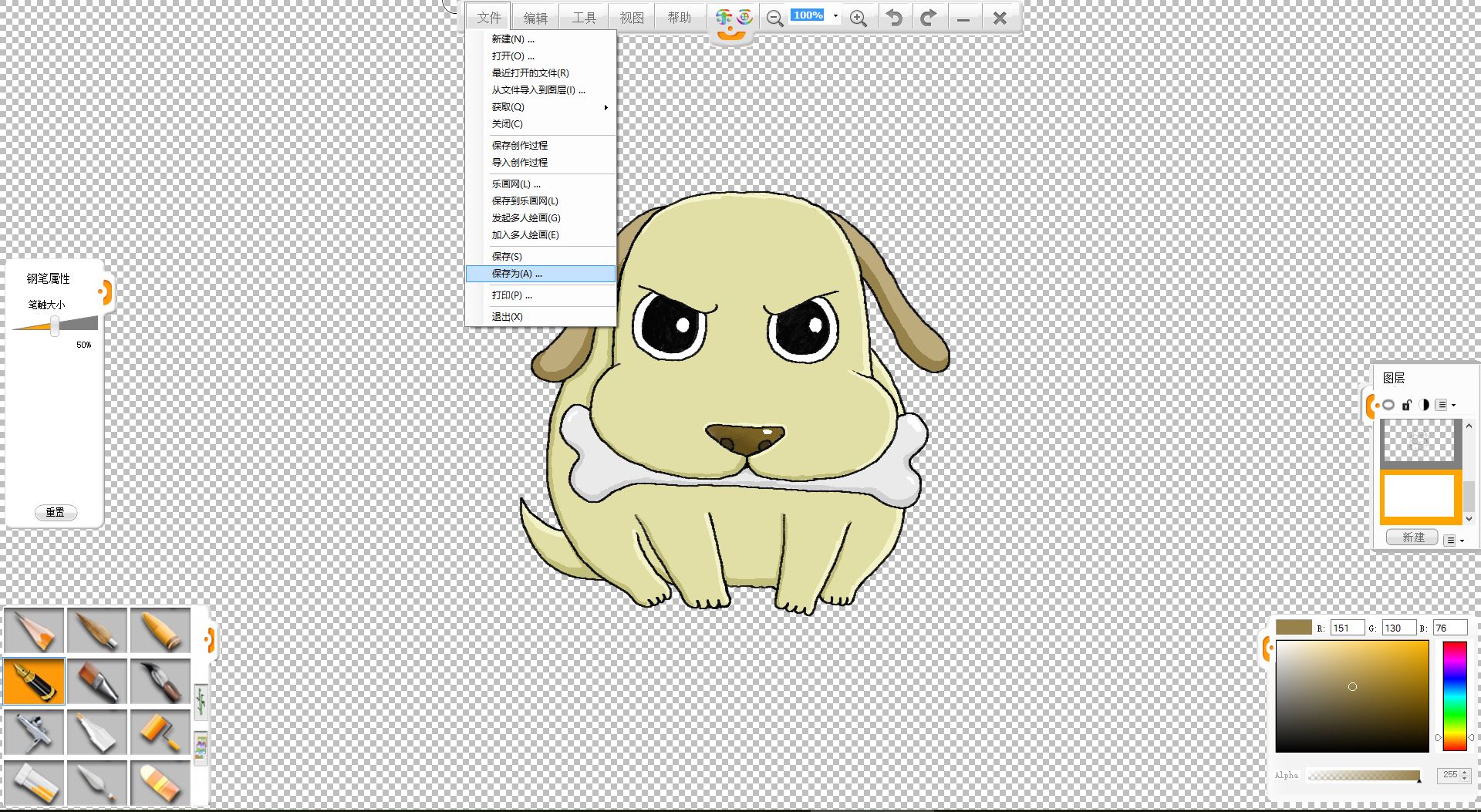10.將畫好的小狗另存為透明背景的.png格式備用。