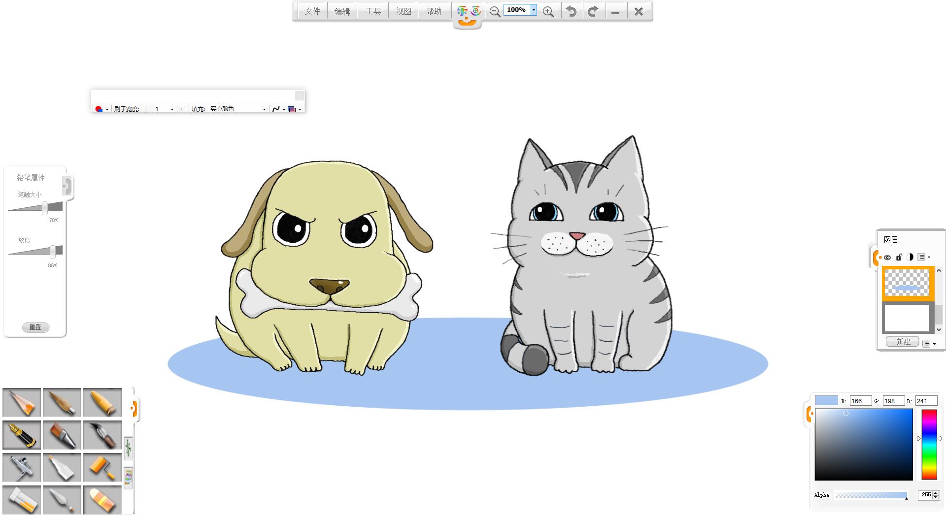 14.選擇工具菜單下的“橢圓”工具,繪制一個藍色的實心橢圓。