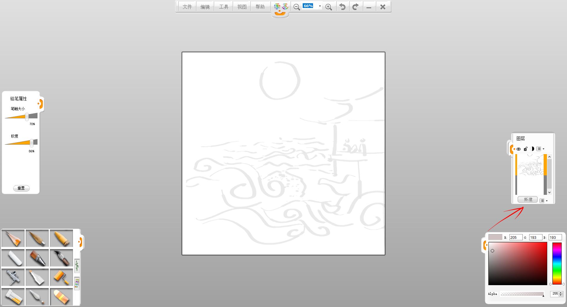 2.使用縮放工具,把畫卷拉遠(yuǎn)縮小,方便繪制全局。