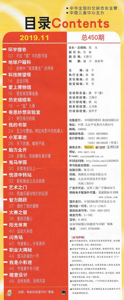 《學與玩》雜志,由中國兒童中心主辦,是2017年國家新聞出版廣電總局向全國少年兒童推薦的優秀少兒期刊,同時也是國家新聞出版廣電總局“農家書屋”工程重點推薦期刊。不僅如此,《學與玩》雜志還是“北京市綠色印刷工程——優秀青少年讀物綠色印刷示范項目”。