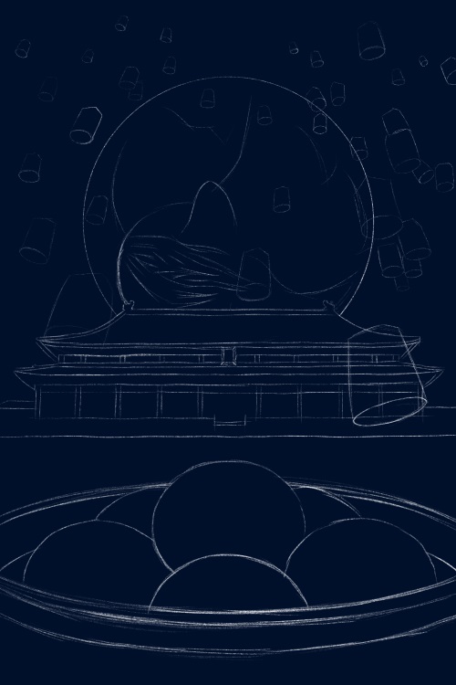 第五步:復(fù)制孔明燈和月亮圖層做高斯模糊模擬光暈效果