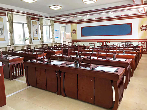 廣視通為江門市江海區景賢小學規劃設計了智慧書法教室。廣視通智慧書法教室以大數據和AI系統為著力點,并引入了互聯網絡云資源、書法教學大數據以及多屏互動教學、智慧光源環境等多項關鍵技術,改變了傳統的樸素教學模式,實現了創新科技與中國書法的完美融合,既彌補了書法教學師資不足的問題,還提高了學生的學習興趣。讓學生真正愛上書法,會寫書法。