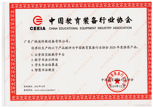 中國教育裝備行業協會2020年度推薦產品