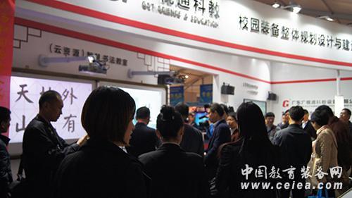 作為智慧教育裝備綜合解決方案生產商與集成商及國家高新技術企業,在此次合作周中廣視通展示了實驗教學云終端、智慧書法教室等產品。廣視通自主研發的實驗教學云終端是第72屆中國教育裝備展示會金獎產品,是一款針對中小學實驗教學的信息化產品,以“平臺+終端+服務”為基礎研發理念,以中小學實驗在線為平臺支撐,整合海量優質資源,結合多媒體觸控一體機、平板、電腦、手機等多樣化終端,有效解決了實驗課程開課率不高,實驗裝備不完善,學生對科學實驗的興趣不高,實驗裝備的使用與維護不到位,等實驗教學和管理的疑點、難點、痛點等問題,有效提升了教學質量。