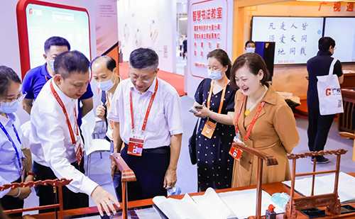 展會(huì)現(xiàn)場,廣視通以信息技術(shù)賦能智慧教育裝備,打造了“3+1”的產(chǎn)品模式,推出“智慧書法教學(xué)全系列產(chǎn)品”、“中考實(shí)驗(yàn)教學(xué)與操作考評(píng)系統(tǒng)”、“創(chuàng)新智慧實(shí)驗(yàn)室”等一系列智慧教育裝備產(chǎn)品,引現(xiàn)場嘉賓和領(lǐng)導(dǎo)紛紛駐足體驗(yàn),受到了一致好評(píng)。