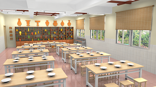 學校陶藝室擁有一整套先進齊全的陶藝教學設(shè)備,有手轉(zhuǎn)盤、泥條機、磨釉機、煉泥機、拉坯機、陶泥、釉料、陶藝工具等用品供學生們使用。