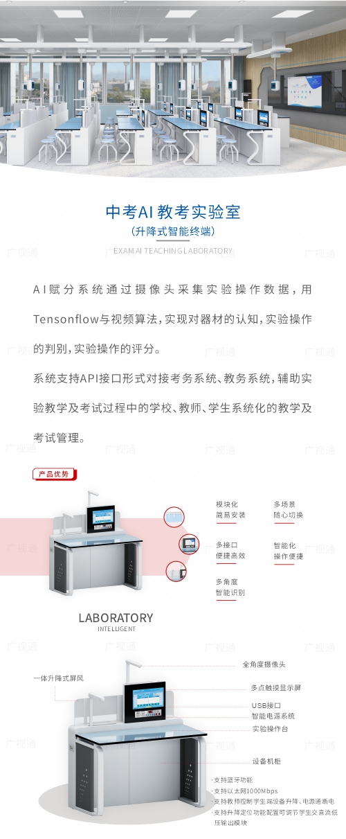 教育裝備數字化一站式解決方案,智能理化生實驗室、中考實驗操作考評系統、實驗仿真與教學系統、數字書法教學云系統、中學AI教考實驗室(升降式/便攜式智能終端)、頂裝/吊裝實驗室、探究實驗室、科學實驗室、人工智能科創實驗室、智慧書法教室、數字音樂教室、美術教室、數字地理教室、數字歷史教室、心理咨詢室、閱覽室、舞蹈室、陶藝室、烹飪教室、通用技術實驗室、勞動教育功能教室、科普探究等 |