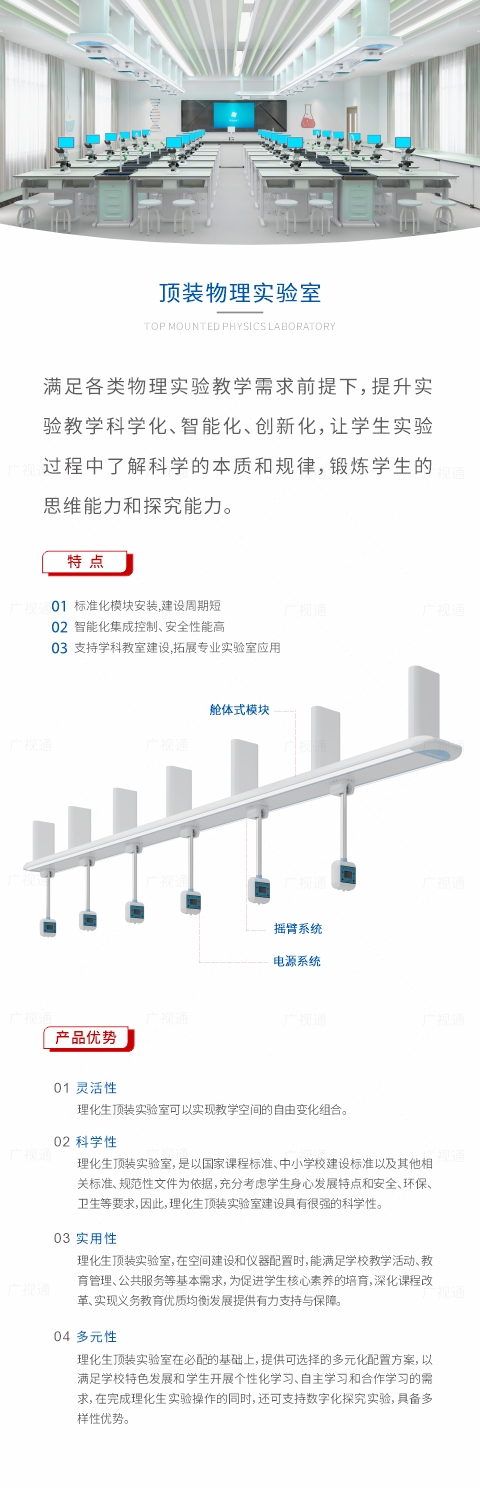 教育裝備數字化一站式解決方案,智能理化生實驗室、中考實驗操作考評系統、實驗仿真與教學系統、數字書法教學云系統、中學AI教考實驗室(升降式/便攜式智能終端)、頂裝/吊裝實驗室、探究實驗室、科學實驗室、人工智能科創實驗室、智慧書法教室、數字音樂教室、美術教室、數字地理教室、數字歷史教室、心理咨詢室、閱覽室、舞蹈室、陶藝室、烹飪教室、通用技術實驗室、勞動教育功能教室、科普探究等