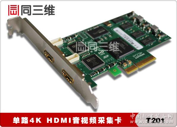 產品詳細介紹 同三維T201是北京同舟視達科技有限公司推出的最新的 HDMI 4K 采集卡,可采集 1 路 4Kx2KHDMI 超高清視頻信號(4096×2160@30fps或3840×2160@30fps)。同三維T201高清4K HDMI采集卡采用高速 PCI-Express×4 接口,達到 600-800MB/s 傳輸帶寬,并采用高速大容量圖像緩存技術,輕松達到更高的傳輸速率和質量;色彩空間轉換、畫面反轉、縮放和去隔行等圖像處理在 FPGA 內完成,極大地減少了 CPU 的負擔,高效率 DMA 傳輸方式進一步解放了 CPU 的能力,從而讓 CPU 專注于用戶指定的工作。