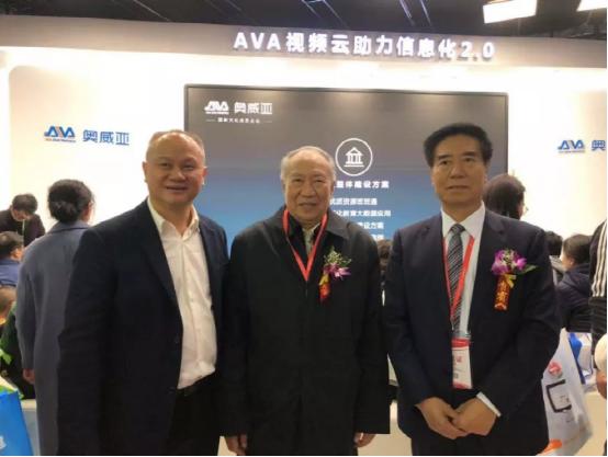 奧威亞創(chuàng)始人歐俊文(左一)與原國家教委副主任柳斌(中間)和中國教育裝備行業(yè)協(xié)會會長王富(右一)合影