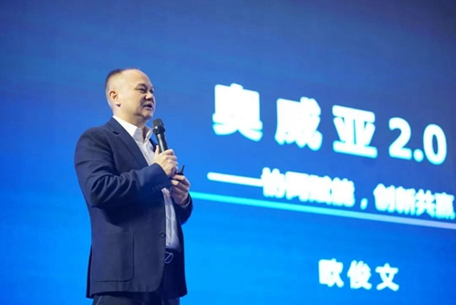 奧威亞創(chuàng)始人歐俊文先生在會上分享了《迎接奧威亞2.0時代》,指明:從外界環(huán)境而言,教育信息化市場已邁入了全新2.0發(fā)展階段;從內(nèi)部發(fā)展而言,奧威亞邁入發(fā)展新階段,從民企轉(zhuǎn)變?yōu)檠肫螅劳懈鼜姶蟮钠脚_與雄厚的技術(shù)資源,奧威亞已全面步入“新戰(zhàn)略、新生態(tài)、新機制”的2.0時代。
