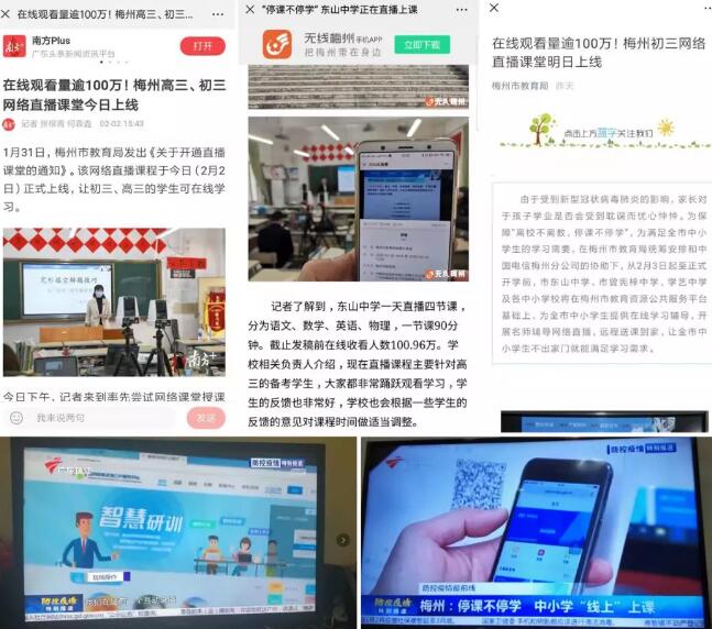 圖為:梅州市東山中學首日上午在線直播情況