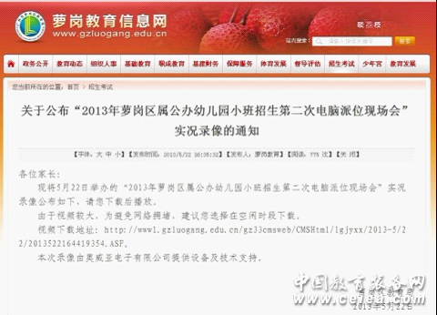 另外,蘿崗區教育局還對電腦派位全程進行錄像,如果有家長對派位結果有質疑,相關部門可調出全程錄像進行核查。其中,蘿崗區教育局公布的“2013年蘿崗區屬公辦幼兒園小班招生電腦派位現場會”實況錄像是由國內知名錄播系統廠商奧威亞科技(以下簡稱AVA)提供設備及技術支持。