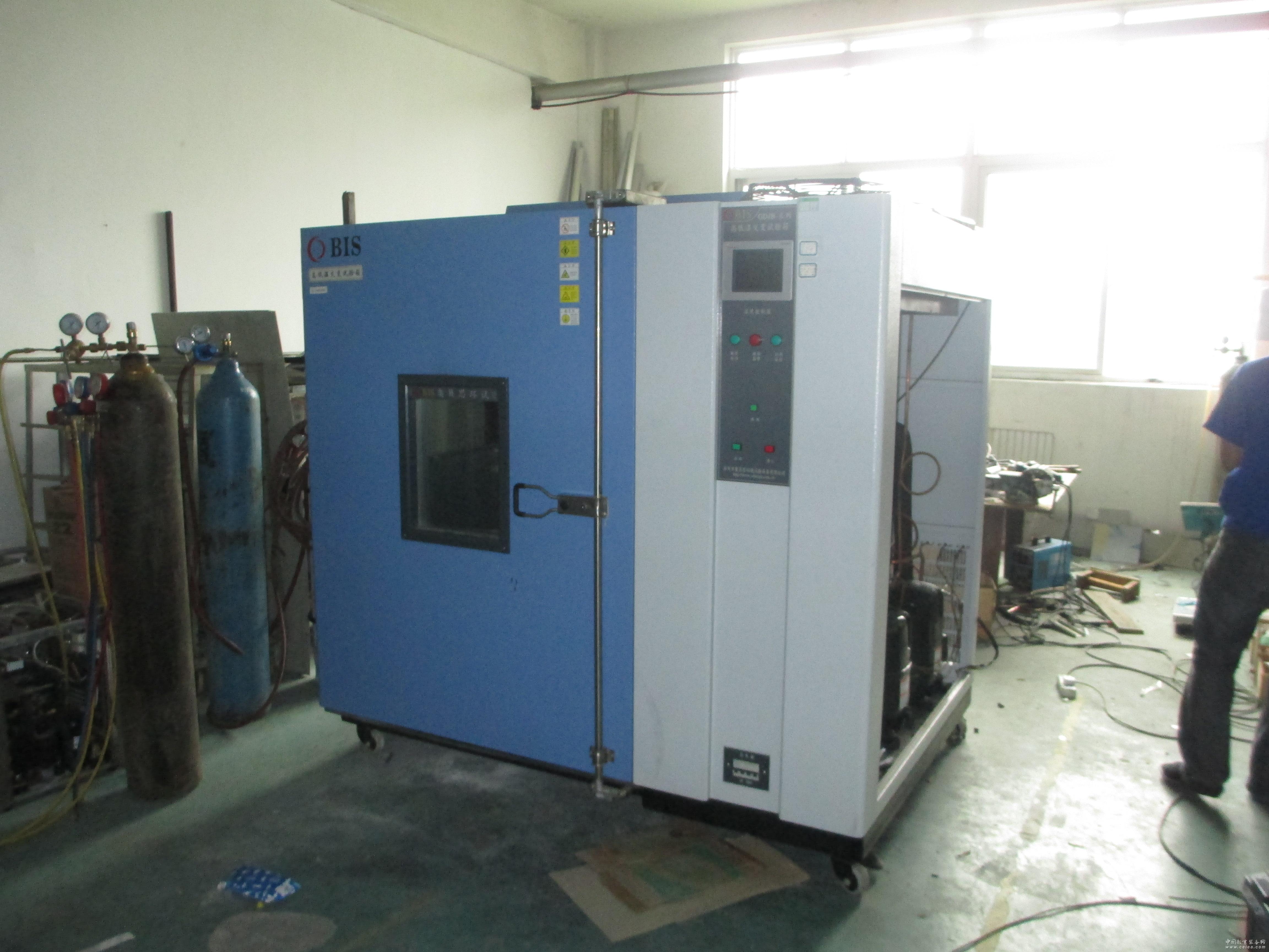 產品詳細介紹產品名稱 高低溫試驗箱 一、產品用途 產品適用于電工、電子產品、元器件、零部件及其材料在高低溫環境下儲存、運輸和使用時的適應性試驗,以及溫度漸變試驗。還可以對電子元器件進行應力篩選試驗。 二、高低溫試驗箱產品規格(單位:mm) 1.型號GDW-50 工作室尺寸:D×W×H 320×350×450 外形尺寸950×870×1420 2.型號GDW-100 工作室尺寸:D×W×H 400×500×500 外形尺寸1030×1020×1470 3.型號:GDW-150 工作室尺寸:D×W×H 500×500×600 外形尺寸1080×1050×1570 4.型號:GDW-225 工作室尺寸:D×W×H 500×600×750 外形尺寸1080×1120×1700 5.型號:GDW-250 工作室尺寸:D×W×H 500×600×810 外形尺寸1100×1120×1780 6.型號:GDW-500 工作室尺寸:D×W×H 700×800×900 外形尺寸1260×1320×1920 7.型號:GDW-800 工作室尺寸:D×W×H 1000×800×1000 外形尺寸1610×1320×1960 8.型號:GDW-010 工作室尺寸:D×W×H 1000×1000×1000外形尺寸1610×1560×1960 三、技術參數 1.溫度范圍:-20℃~150℃(A)、-30℃~150℃(B)、-40℃~150℃(C)、-60℃~150℃(D)、-70℃~150℃(E) 2.溫度均勻度:≤±2℃ (空載時) 3.溫度波動度:≤±0.5℃ (空載時) 4.降溫速率:0.7~1.0℃/min 5.升溫速率:1.0~3.0℃/min 6.時間設定范圍:0~999(H、M、S) 7.電源電壓:380V±10% 8.設備總功率:3KW~13.5KW 四、高低溫試驗箱箱體結構 1.箱體采用整體結構。 2.箱體內側采用1.0mmSUS304B不銹鋼板,外側采用1.0mm冷軋鋼板噴塑,保溫材料采用超細玻璃保溫棉。 3.大門密封采用雙層硅橡膠密封材料。 4.觀察窗為多層導電膜鋼化中空玻璃,尺寸大小為200×300mm為防止低溫時玻璃結霜,特設內置式特制發熱絲環繞,并設有照明燈,為觀察提供照明。 5.在箱體側面設有帶塞子的φ50mm測試孔,塞子材料為硅橡膠低發泡,能耐高低溫,兼具保溫效能。 6.在箱體工作室后側設置有一個空氣調節柜,在其間安裝蒸發器、電加熱器、風機、風機蝸殼等設備。 7.溫度傳感器置于出風口。 6.試驗箱內的送風方式為上送風下回風方式。 五、加熱與制冷系統 1.加熱器采用瓷架鎳鉻絲電加熱器,此加熱器熱惰性小,壽命長。由儀表輸出可控脈沖占空比PID信號,通過固態繼電器來控制,控制平穩、可靠。 2.低溫制冷采用法國“泰康”全封閉式壓縮機機組。其它制冷部件如美國RANCO、瑞士“ALFALAVAL”、丹麥DANFOSS、意大利CASTEL、日本鷺宮等進口品牌產品。使用R404A環保型制冷劑。 3.為確保系統安全運行,在系統中需設置高壓控制、超壓、過載等保護系統。同時為了監測系統運行情況,在高壓端設有高壓表監測系統運行情況。 六、控制系統 1.溫度控制儀:采用高精度數顯溫控儀,控制精確、平穩,長期運轉不漂移。 2.傳感器:PT100測溫傳感器。 3.控制加熱輸出采用固態繼電器過零觸發,以降低噪聲,減少污染,方便維修,提高控制精度。 4.在控制系統中需設有安全保護措施,包括:缺相保護、相序錯誤保護、相電壓不平保護、風機過載保護、超溫、斷電保護、機組高壓保護、機組過載保護、機組過溫保護、漏電等保護。 5.控制系統設有方便用戶的操作面板,設在試驗箱左上部,設有電源、照明和各功能操作按鍵以及故障指示燈。 6.在系統中除了主控制器外,還設置一獨立的超溫保護器,即使主控制器出現故障,超溫保護器也能可靠的斷開加熱電源以保護設備和試品的安全。 7.在電氣控制系統中設有互鎖裝置,當循環風機沒有啟動或過載時制冷機組和加熱系統不能啟動,機組超高壓、過載時制冷機組都將被禁止。 七、執行標準 1.GB/T2423.1-2001; 2.GB/T2423.2-2001; 3.GB/T10592-2008; 4.GB/T10589-1989; 5.GB/T11158-1989; 6.IEC68-2-1; 7.IEC68-2-2; 八、設備使用環境 1.環境溫度:5℃~+28℃(24小時內平均溫度≤28℃); 2.環境濕度:≤85%; 3.電源要求:AC380( ±10%)V/50HZ 三相四線制; 4.操作環境需要在室溫28度以下而且通風良好; 5.機器放置前后左右各80公分不可放置東西; |