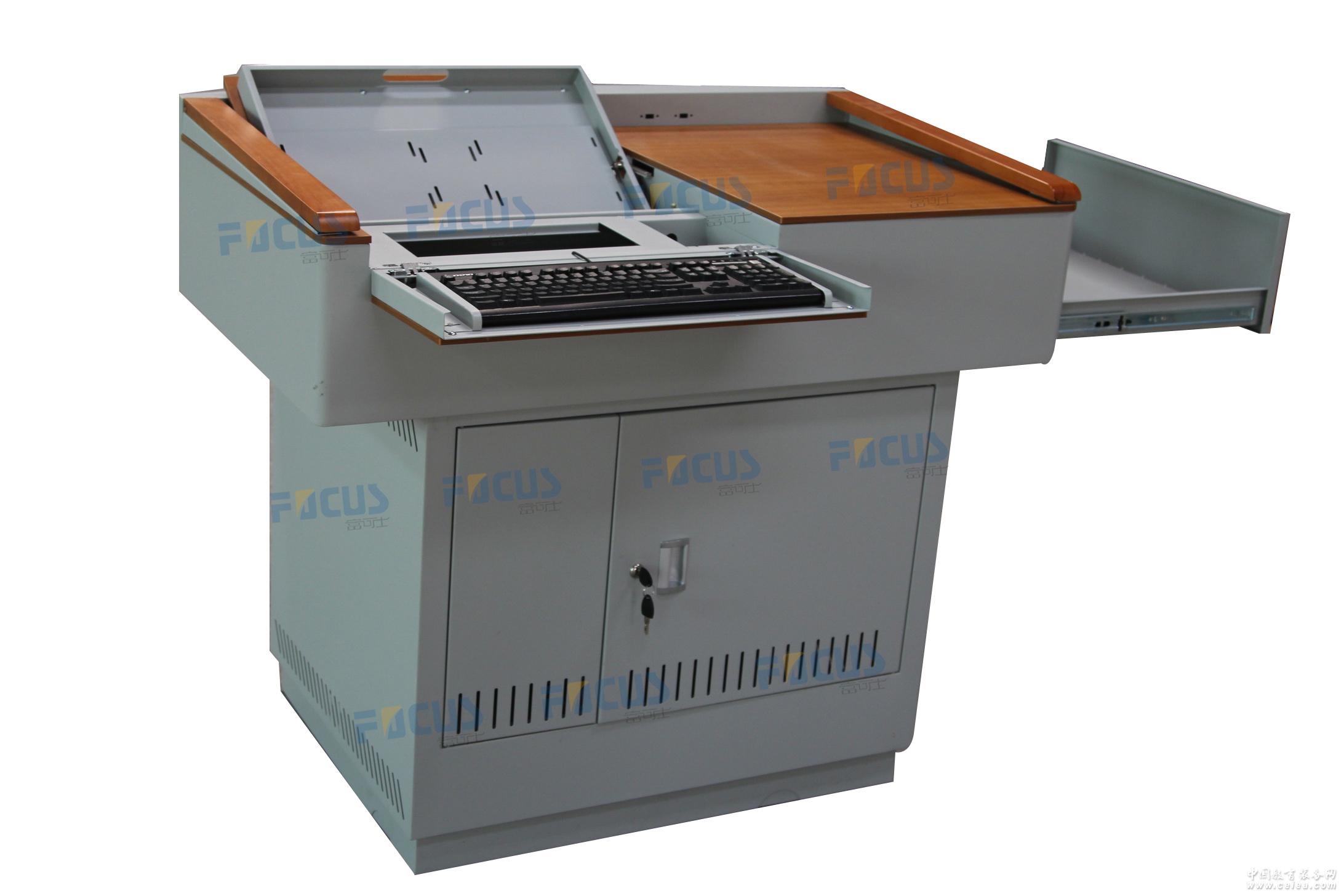 產品詳細介紹型號:FOCUS-S400 參數: 1、講桌采用鋼木結合構造,桌體上部分采用圓弧設計。講臺整體設計符合人體力學原理,提供左右木質扶手,供使用者扶用。 2、桌面由一把機械鎖控制,采用環環相扣設計,顯示器蓋板、鍵盤和展示臺抽屜逐步打開。操作更簡易,使用更安全。 3、講桌桌面采用木質耐劃臺面或紡木紋冷軋鋼板臺面,防火、防塵、防水、耐刮花,整體布局簡潔、美觀. 4、講桌主體材料采用1.2mm冷軋鋼板,桌子正面可根據客戶需求絲印學校LOGO。 5、講桌上下層采用分體式設計,桌面部分和桌體部分自成一體,方便進出設計比較窄的教室門。講桌內置固定螺絲孔位,安裝簡單,安全防盜;獨立包裝,運輸輕便。 6、顯示器蓋板和鍵盤部分采用翻轉式設計。顯示器蓋板可裝置17-19寸液晶顯示器;鍵盤下面放置一體中控或者分體中控系統。 7、右側抽屜可放置實物展示臺,關閉后,所有設備都隱藏在講臺內;。 8、桌面集成USB接口模塊兩個,可預留VGA\網絡\Audio接口。 9、講桌桌體下層內部采用標準機柜設計,帶層板,所有設備可整齊固定。 10、關閉尺寸:1150*680*950(長寬高)MM。 11、桌底帶螺絲孔位,可方便擴充四只活動輪,兩輪自鎖,方便移動。 【多媒體講臺|鋼制講臺|講桌】適用范圍 適應范圍廣泛:大中院校、中小學校的多媒體教室、階梯教室、普通教室、演播廳 、以及各種培訓教室、報告廳等。 【多媒體講臺|鋼制講臺|講桌】包裝說明 紙箱包裝,可根據需求訂制木箱。 【多媒體講臺|鋼制講臺|講桌】售后服務 一年免費保修,終身維護維修。 |