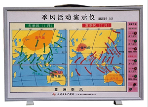 大范圍地區(qū)的盛行風(fēng)隨季節(jié)改變現(xiàn)象的風(fēng)稱季風(fēng)。與生活在該地區(qū)的人們密切相關(guān)。所以,季風(fēng)環(huán)流是高中地理—《全球大氣環(huán)流》章節(jié)中一重要知識(shí)點(diǎn)。通過本內(nèi)容的教學(xué),應(yīng)該使學(xué)生了解和獲得“季風(fēng)的成因”、“ 東亞季風(fēng)”、“ 南亞季風(fēng)” 各自特征及相關(guān)的地理知識(shí)概念。季風(fēng)活動(dòng)演示儀是國(guó)家教育部2000年6月制定的《中學(xué)理科教學(xué)儀器配備目錄》要求中學(xué)必配的新增教學(xué)儀器。我廠按照這需求,以《中學(xué)地理教學(xué)大綱》的要求和教科書的知識(shí)結(jié)構(gòu)為產(chǎn)品設(shè)計(jì)的指導(dǎo)思想,研制了本產(chǎn)品,符合學(xué)校地理教學(xué)演示實(shí)驗(yàn)之用。