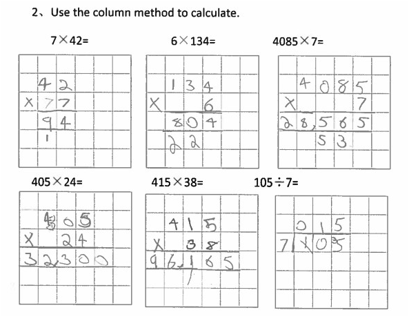 與2016年零起點(diǎn)的《分?jǐn)?shù)的初步認(rèn)識(shí)》不同,這次我執(zhí)教的《一位數(shù)乘多位數(shù)》涉及大量計(jì)算。我擔(dān)憂,對(duì)于計(jì)算能力相對(duì)薄弱的英國(guó)孩子,他們能吃透嗎?