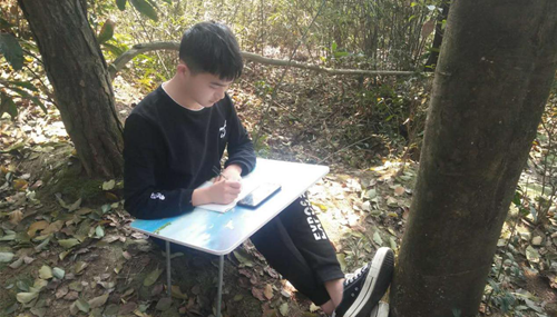 合江縣少岷職業技術學校高一年級信息技術一類9班的程鑫同學,作為班級學習委員的他,堅持做到了示范帶頭作用。線上課程開始后,平時一向不急不慌的程鑫產生了一種莫名地惆悵,因為疫情影響,在鄉下沒有網絡,手機信號也不強。他從父親手中拿過手機,到處轉圈,不斷向屋后的山上高處走,因為距離上課時間不多了,他越走越急,被樹根和石塊絆倒幾次,心里開始有點慌了,終于在后山脊上一處廢棄苗圃大棚,程鑫同學露出憨厚的笑容:“這里終于有信號了!”。他就在這樣的地方開始上課了。每天,因為條件有限,他蹲在地上,趴在凳子上拿著手機聽課,做作業。