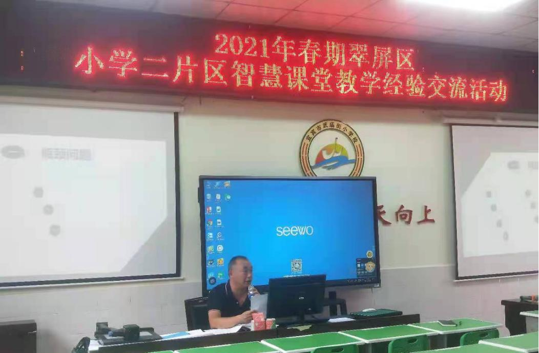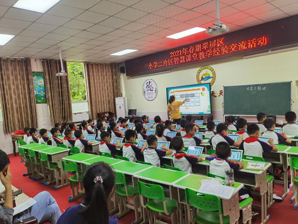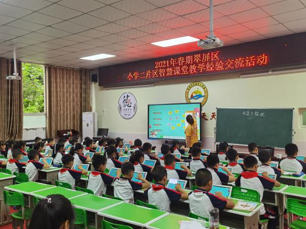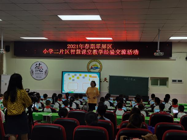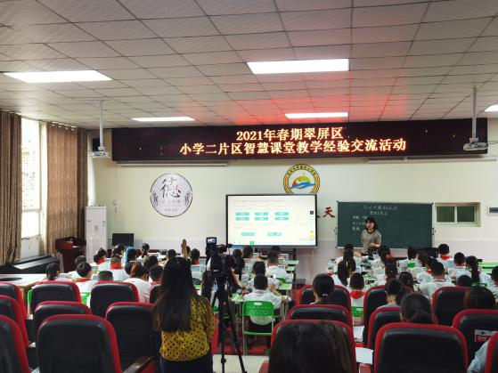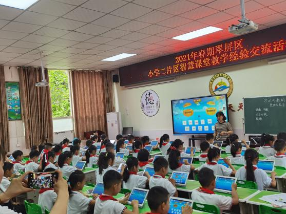 近日,2021年春期翠屏區小學二片區智慧課堂教學經驗交流活動在宜賓市武廟街小學學術廳舉行。本次活動以“構建智慧課堂、創設有效教學”為主題,旨在為二片區數學骨干教師在智慧教育課堂教育教學方向的新理念、新動態,搭建展示交流的平臺,充分發揮骨干教師的輻射帶動作用。