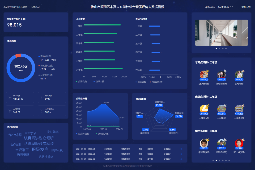 在學�!芭囵B具有獨立人格品質和未來生活創造能力的本真少年”的育人目標下,本真一直重視校園管理與學生綜合素質培養:從2022年底起,學校便啟用希沃魔方綜合素質評價平臺,2023年引進65臺希沃電子班牌,通過數字化管理,完善全校學生綜合素質評價,助力學生“德智體美勞”全面發展。