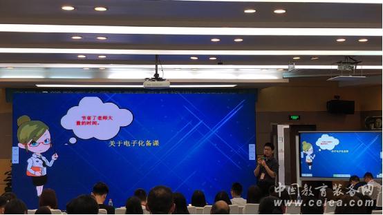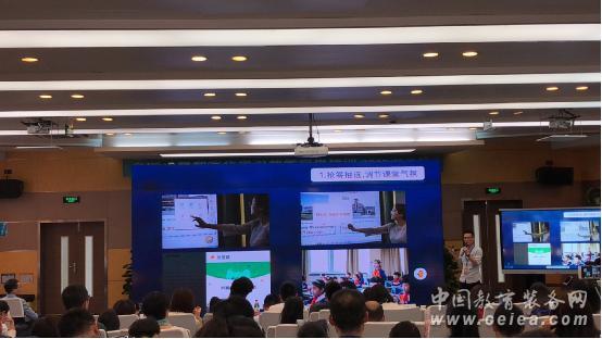 烏鎮植材小學的陸校長圍繞學校打造有品質的信息化教學進行分享,學校從最開始接觸希沃一體機,培養老師使用希沃白板