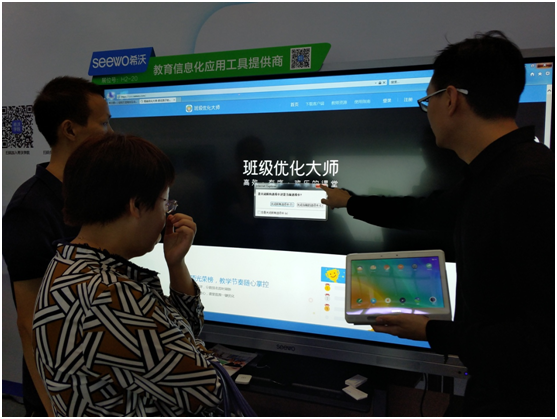 本屆教博會上,希沃的150臺智能交互平板,主要用于展會工作坊說課、示范課、參展商方案展示等。現場的許多老師早已是希沃產品的使用者,不僅不需要志愿者指導使用,還自如地開啟與使用希沃白板、希沃授課助手等應用軟件,并向其他老師介紹信息化應用為自己的教學帶來的改變。
