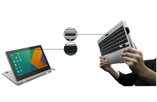 seewoBook擁有全新的硬件配置。360度雙轉軸設計、前置與后置雙攝像頭,滿足學生在不同場景的拍照需求。鍵盤采用全尺寸防水設計,附有專為學習定制設計的功能按鍵,如截圖筆記、全屏、防藍光護眼模式等,讓學習更專注、更快捷。還有10秒快速開機,為學習節省出更多時間,8小時持久續航,減少學習干擾。
