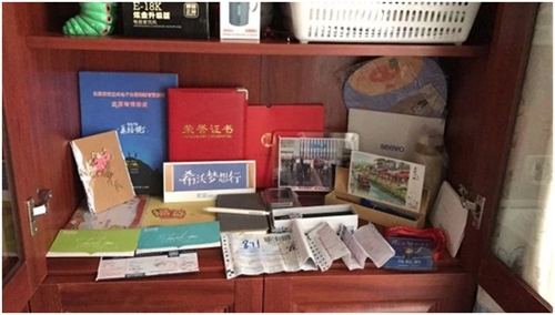 而這樣的故事還有很多,比如希沃學院云南的一位天使用戶馬老師,甚至把希沃學院歷來發給他的證書、獎品、禮物甚至每張快遞單都一一珍藏起來,專門陳列在家里的一個柜子里。