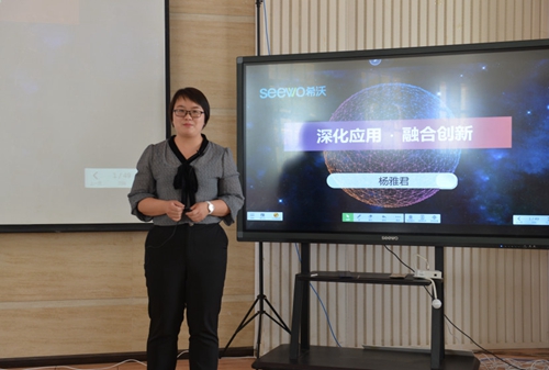 大理市互動(dòng)教學(xué)創(chuàng)新工作室主持人、希沃杏壇導(dǎo)師楊雅君針對(duì)信息技術(shù)與教育教學(xué)的融合進(jìn)行了《深化應(yīng)用•融合創(chuàng)新》的專題講座。