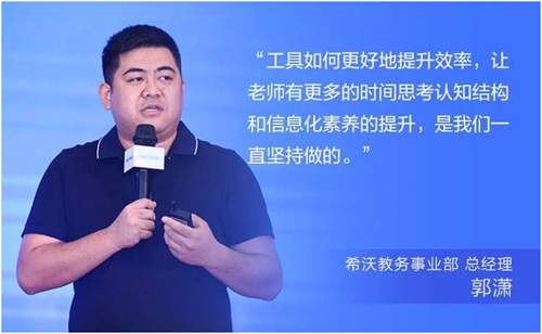 中國電化教育雜志社社長許林先生的致辭,拉開了希沃分論壇的序幕。隨后,來自北師大的朱京曦博士、希沃教務(wù)事業(yè)部總經(jīng)理郭瀟、希沃教育研究院院長胡婷玉,從政策要求、未來教師核心能力、教育技術(shù)助力教學(xué)創(chuàng)新、平臺服務(wù)支撐教師成長等全方位探討了教師的未來成長之路。