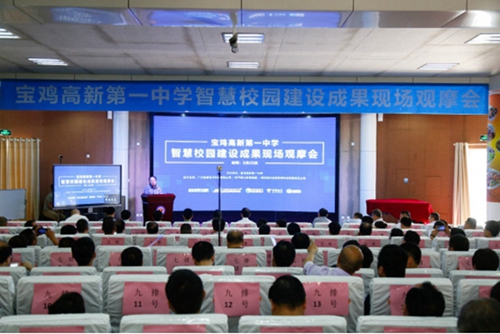 會上舉行了高新一中智慧校園啟動儀式。寶雞市教育局副局長王偉波講話指出,構建處處可學、時時能學、人人皆學的智慧教育體系。
