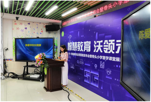 針對此次的5G校園合作,陳愛華校長表示,學生成就了知識創造者,期待5G+優化人人通,優化互動課堂,借鑒互聯網5G+教育,建立移動的校園,無線的校園等等,致力推進教育信息化融入到教學當中,借助大數據平臺的應用,創新課堂模式,努力打造巷頭小學的錄課教育。