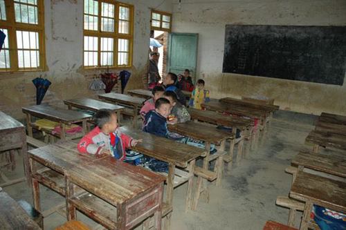 偏遠(yuǎn)的鄉(xiāng)村地區(qū),老師們用的最多的,依然那每支售價(jià)不到0.1元的粉筆和身后褪色的黑板。坐在側(cè)邊的學(xué)生們,因?yàn)楹诎宸垂猓?cè)著身子,希望能多看到幾個(gè)字。除此以外,他們只有身旁的墻上的那句“學(xué)海無(wú)涯苦作舟”作伴。