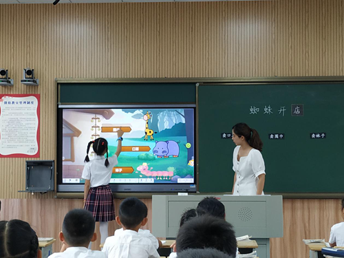 活動以吳文潔老師執教的一堂《蜘蛛開店》開場,在課堂中,吳老師通過生動形象的語言為孩子們營造了一個童話世界,讓學生仿佛置身其中,并結合運用了希沃白板互動課堂教育手段,將蜘蛛開店的故事展現得淋漓盡致。孩子們樂在其中,學會了有滋有味讀故事,活靈活現講故事。