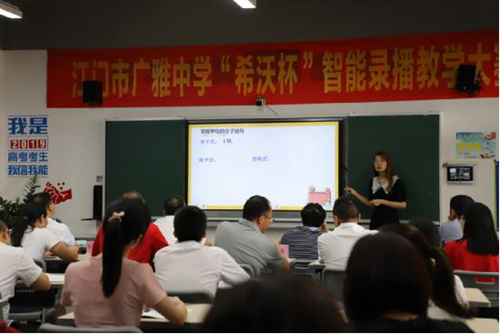 據悉,江門廣雅中學自2018年8月建成之初便進行智慧校園建設的全面布局,全校已為上百個班級部署交互智能平板、希沃交互智能錄播、希沃云班牌等信息化設備,超過80%的教師應用交互式課件希沃白板進行信息化教學,并常態化應用希沃交互智能錄播,與日常教學教研深度結合。