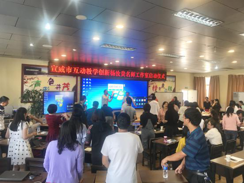 為加速推進信息技術(shù)與教育教學(xué)的深度融合,構(gòu)建創(chuàng)新應(yīng)用輻射體系,探索信息技術(shù)環(huán)境下新穎多樣的教學(xué)模式,推動全市范圍的創(chuàng)新互動教學(xué)與信息技術(shù)在課堂教學(xué)中常態(tài)化應(yīng)用。希沃?jǐn)y手宣威市教育體育局,在各位仁人志士的支持與努力下,宣威市互動教學(xué)創(chuàng)新楊汝貴名師工作室于2019年7月28日在宛水二小正式啟動。