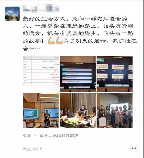 為了展現出最好的學科融合作品,老師們紛紛放棄了休息的時間。白天的培訓緊湊充實,晚上老師們學習與討論的熱情依舊高漲。房間、大廳、餐廳,伴著并不明亮的燈光,老師們仍在討論與打磨課件,精心準備。